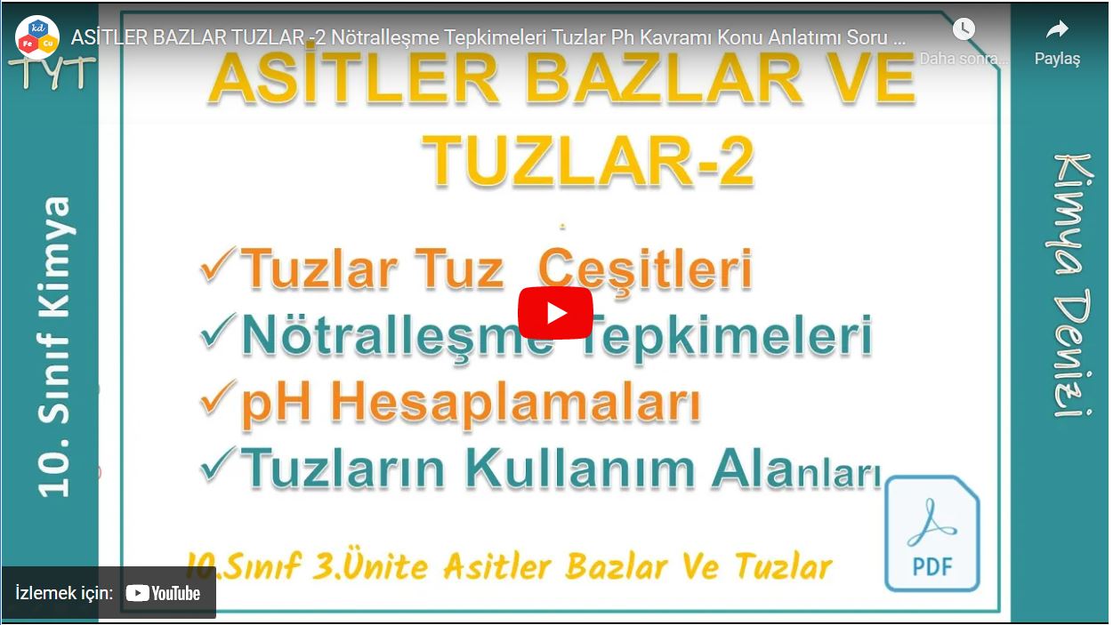 10.SINIF ASİTLER BAZLAR TUZLAR PDF VE VİDEO ÇÖZÜMLERİ