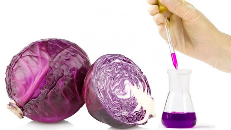 » Kırmızı lahana suyu doğal indikatördür ; asidik ortamda renksiz, bazik ortamda ise trol mavisi rengindedir