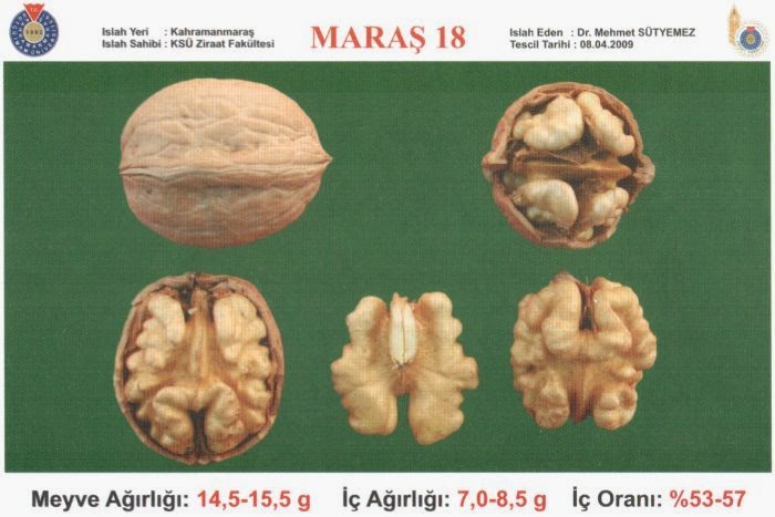 - Bu özellik bakımından Maraş 18 ceviz çeşidi çok yüksek orana sahiptir.