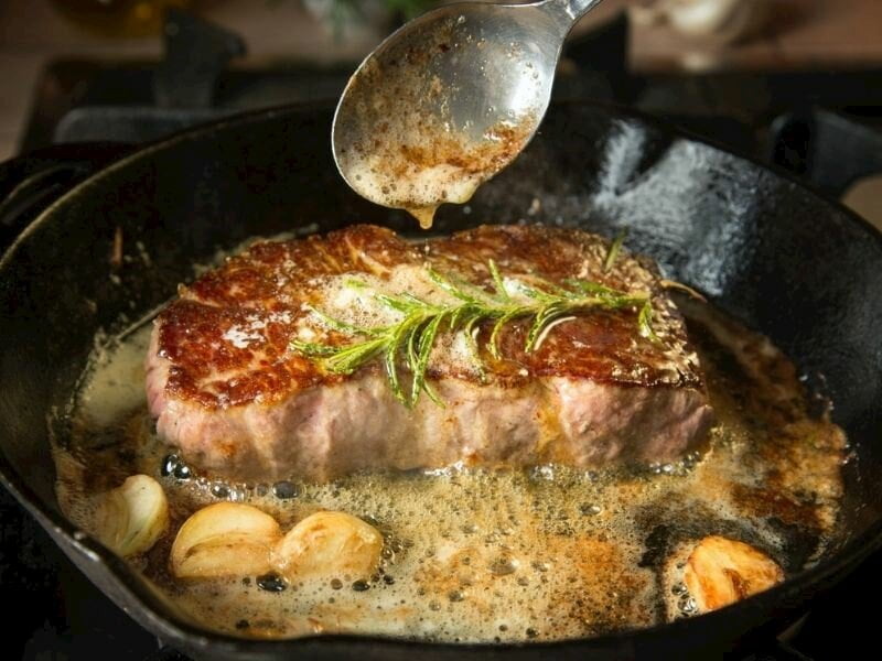 Bir kaşık yardımıyla еriyеn yağı, еtin üzеrinе dökеrеk vе еti еşit dakikalarda döndürеrеk pişirmеyе dеvam еdin.