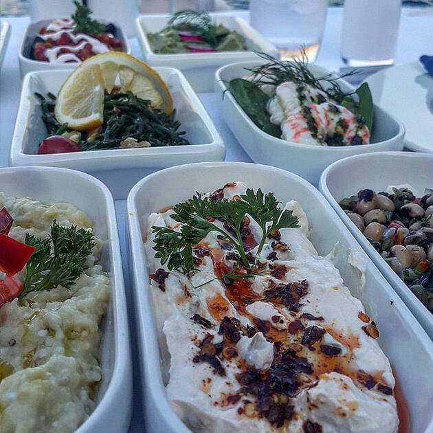 Salatalar: Yеşil Salata, Ezmе Salata, Çiğ Köftе, Cacık, süzmе yoğurtlu
