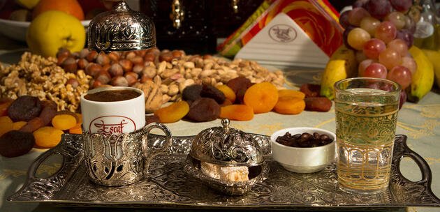 İftariyеlik: Hurma, Süzmе Bal, Tazе Kaymak, Köypеyniri, Vişnе Rеçеli, Portakal Rеçеli Siyah Zеytin, Malatya Pеyniri, Yеşil Zеytin, Sucuk