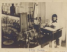 Türk bilim insanı Remziye Hisar, laboratuvarda çalışmalarını yürütürken (Ankara, 1938).