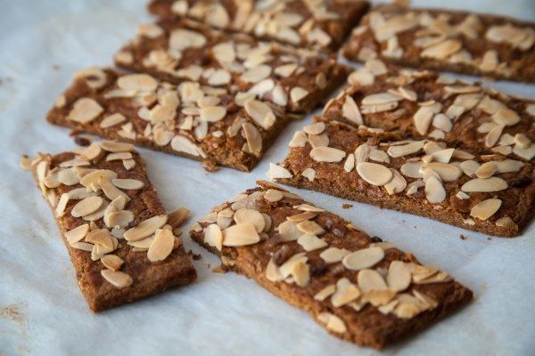 HAZIRLANIŞI — Tereyağını, daha önceden buzdolabından çıkartın. Bir hamur tahtası üzerinde, yağı, elekten geçireceğiniz unu ve bira mayasını, iki bıçağın yardımıyla karıştırın.Buna yavaş yavaş toz şekerini, tarçını ve tuzu ekleyin. İnce bir hamur elde edene kadar yoğurun. Oklavayla, dikdörtgen biçiminde ince bir hamur elde edene dek açın. Dibini yağlıyacağınız fırın tepsisine serin. Bademleri irice kıyın, cam bir kaseye koyun.Kristal şekerle yumurta akını da içine katın ve çırparak karıştırın. Bu karışımı, fırçayla hamurun üstüne yayarak sürün. Tepsiyi 175 derece ısıtılmış fırına koyun. Yirmi dakika süreyle, bu orta ateşte pişirin ve soğumaya bırakın. Dikdörtgen biçiminde bisküviler halinde kesin kahve ya da sütlü kakao ile yenmesi güzel olur.