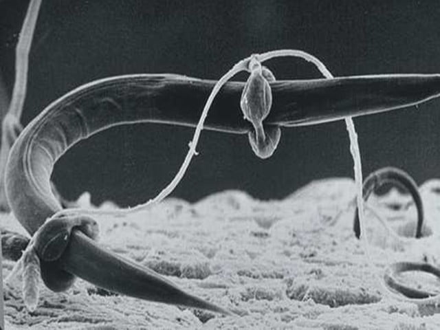 Resimlerden çıkarabildiniz mi bilmiyorum. Ama sizi fazla da bekletmeden açıklayalım. Birinci resimde bir mantar (fungus) tarafından yakalanmış bir nematod görülüyor. İkinci resimde ise domates köküne saplanmış ve kökü yiyen bir nematod göreceksiniz.