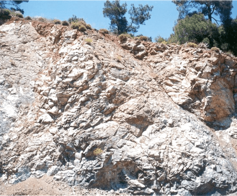 CaCO3 ve MgCO3 tan ibarettir. Serttir ve güç ayrışır. Çatlaklı sığ toprakları verir. Kilce zengindir, ağır bünyeli toprakları verir. Su tutma kapasitesi yüksek geçirgenliği düşüktür. Bu tür sahalarda üzerindeki doğal bitki örtüsü korunmalıdır.