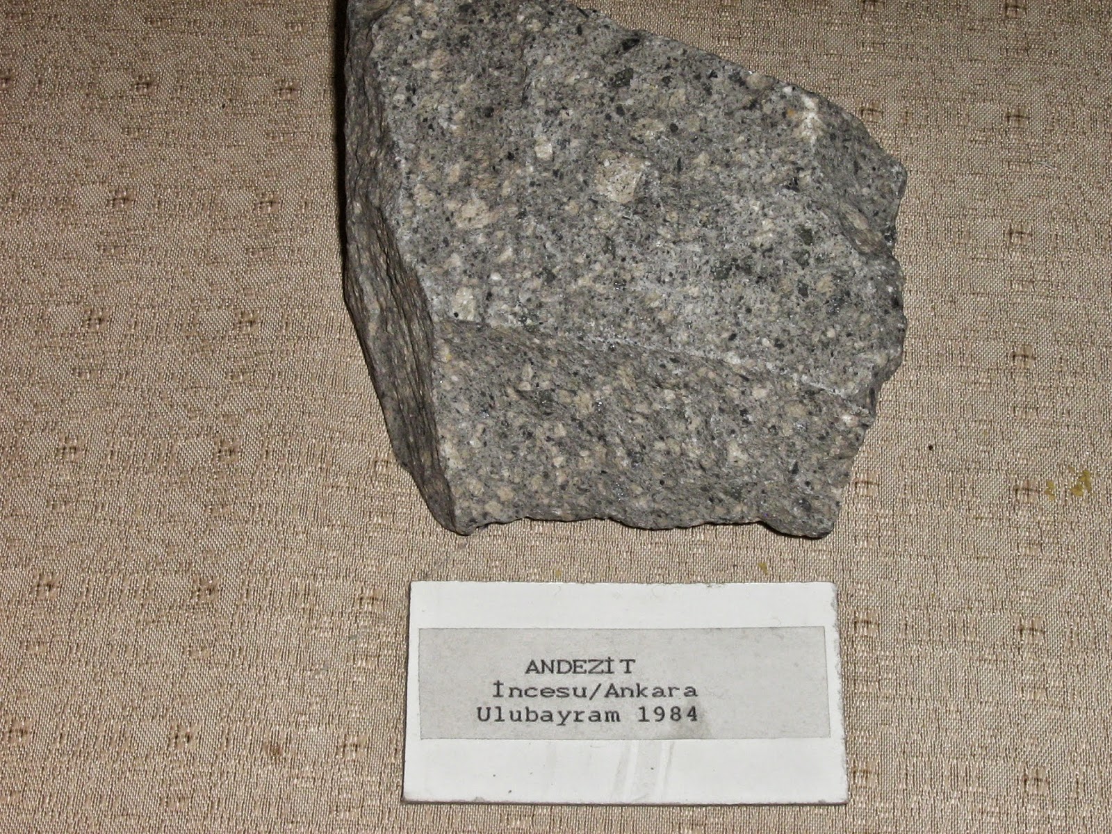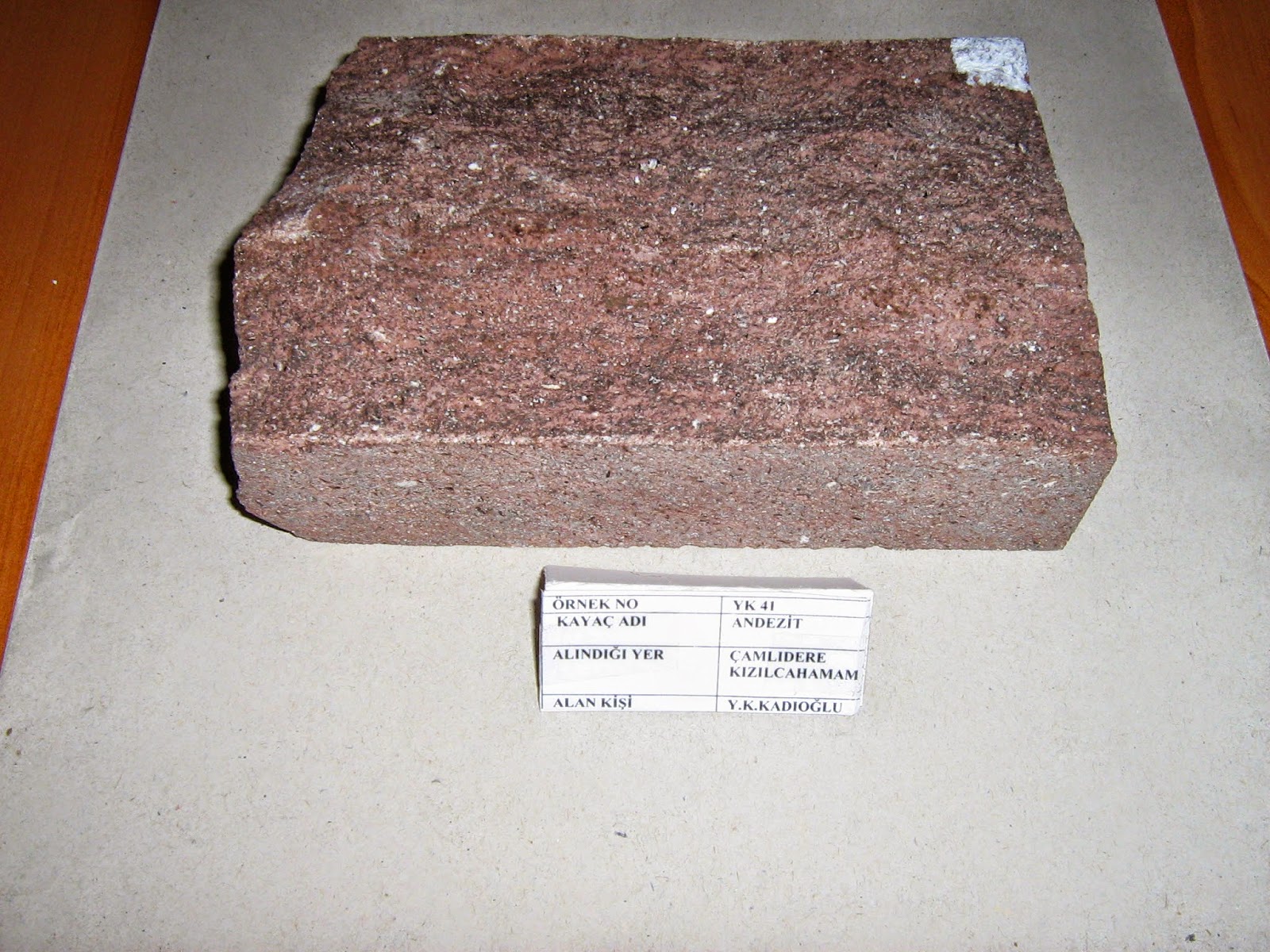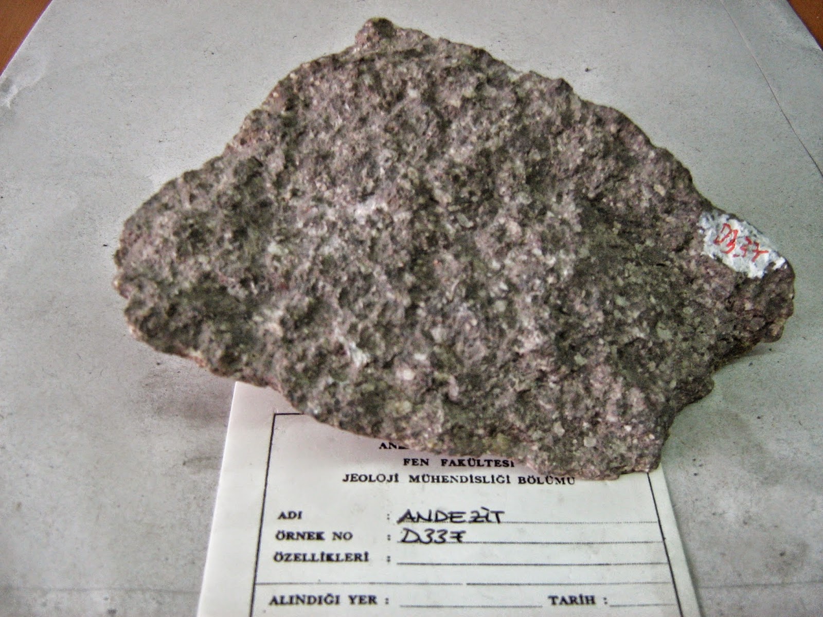 Andezit Anakayalar Feldispat, Mika, Hornblent, Ojit minerallerinin birleşmesi ile oluşmuştur. Gri,yeşilimsi, kırmızımsı ve esmer renkte görünebilirler.