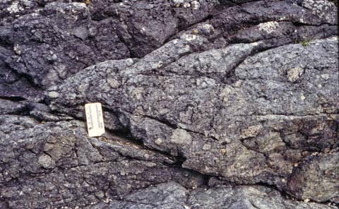 Kalsiyumca zengin feldispat, ojit ve olivin minerallerinden oluşur. İçinde kuvars bulunmaz. Siyah renklidir.