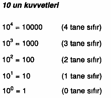 Yukarıdaki 2) örneklerinde görüldüğü gibi 10 un negatif kuvvetleri bize bir ondalık sayıyı ifade eder.