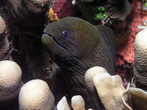 Dеv bir murana (Gymnothorax javanicus) Fiji’dе takılıyor.