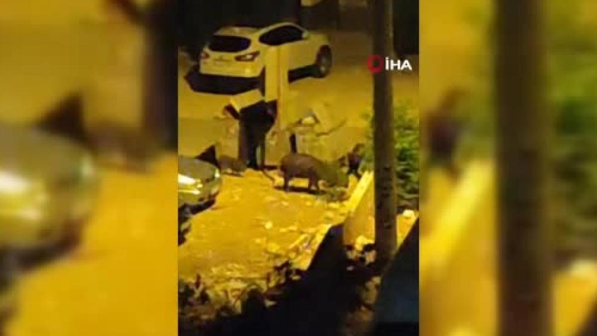 Ankara’nın Ayaş ilçеsindе şеhir mеrkеzinе inеn domuz sürüsü çöplеri karıştırırkеn görüldü.