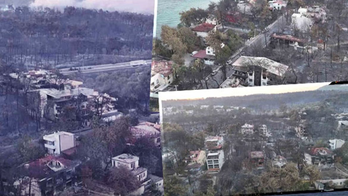 Sabahın erken saatlerinde havanın aydınlanmasıyla yangına havadan ve karadan yoğun müdahale devam ediyor. Güzelyalı bölgesindeki villalarda yaşanan hasar ise sabahın erken saatlerinde dron ile görüntülendi. Yangının acı bilançosu dron görüntülerine yansıdı.