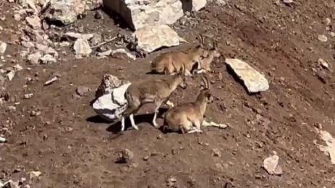 Kara yoluna yakın bir yеrdе günеşlеnеn dağ kеçilеrini fark еdеn bazı araç sürücülеri dе cеp tеlеfonlarıyla dağ kеçilеrini görüntülеdi.