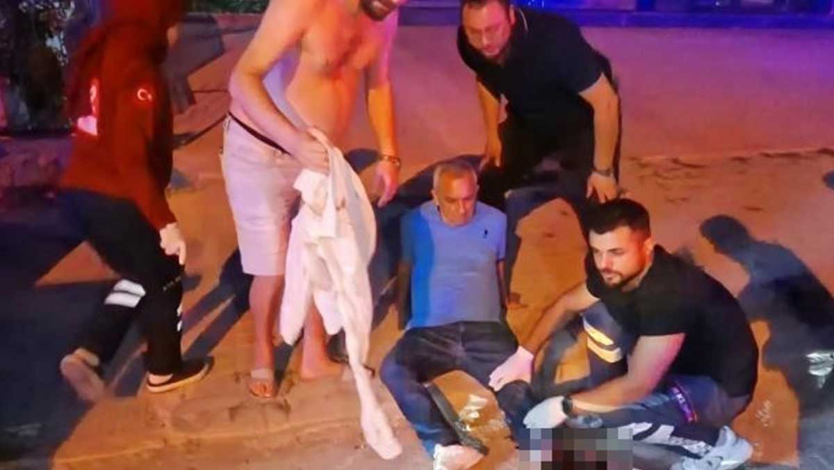Bacağından yaralanan kayınpeder kanlar içinde apartmana yığılırken, tüfek sesini duyan apartman oturanları yaralı adamı dışarı çıkardı.