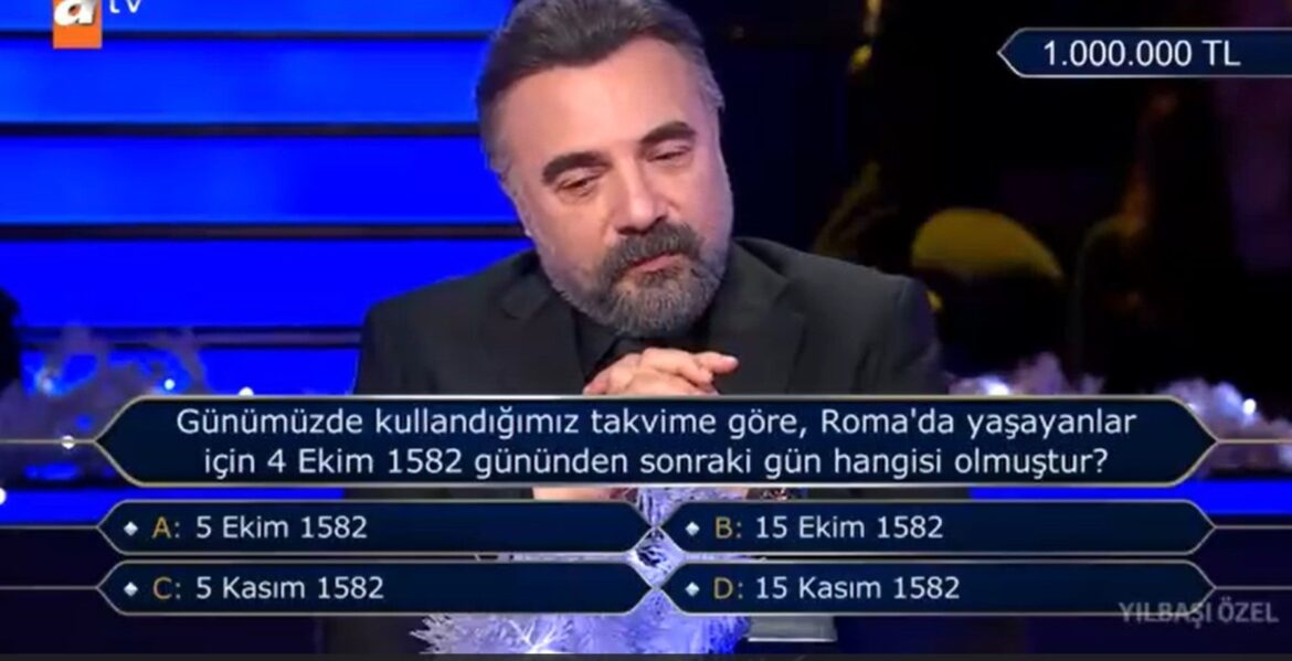 – Günümüzde kullandığımız takvime göre, Roma’da yaşayanlar için 4 Ekim 1582 gününden sonraki gün hangisi olmuştur?