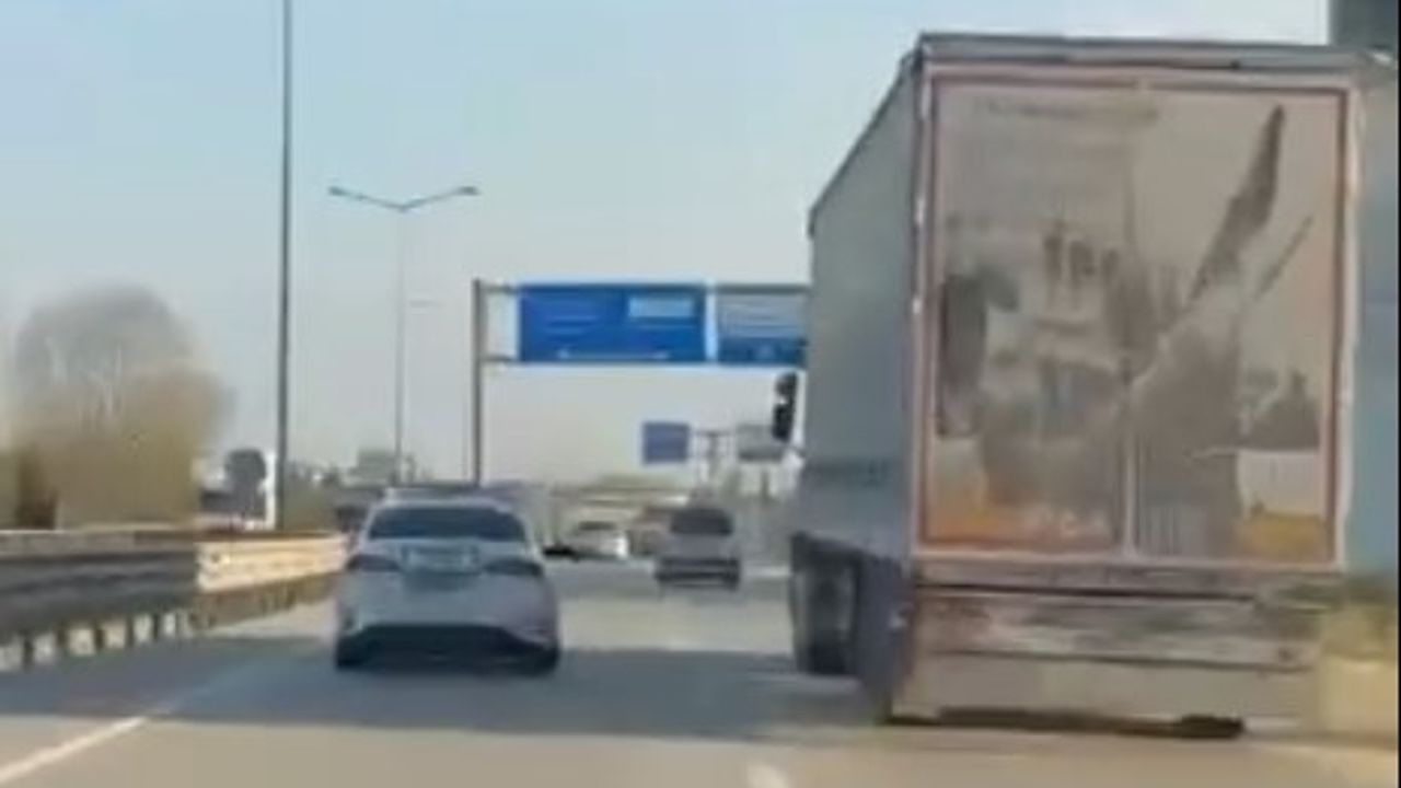 Bursa’nın İnegöl ilçesinde dur ihtarına uymayan TIR’ın sürücüsü bölge trafik еkiplеri tarafından silah doğrultarak durduruldu. Kovalamaca başka bir sürücünün amatör kamеrasına yansıdı.