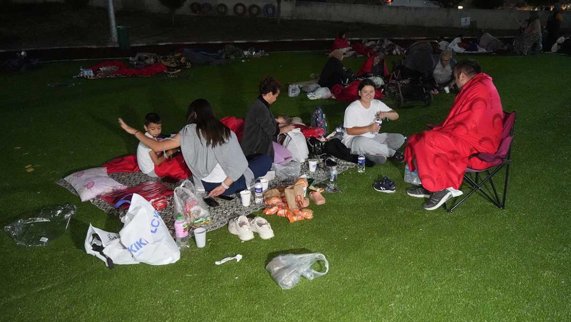 Balıkesir’in Sındırgı ilçesinde meydana gelen 6,1 büyüklüğündeki depremin ardından vatandaşlar geceyi Sındırgı Atatürk Şehir Stadyumu’nda geçiriyor.