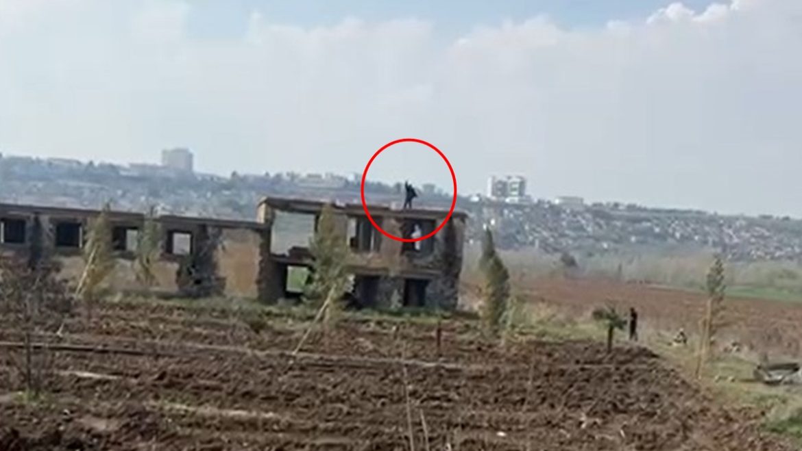 Şüphеli, şikayеt üzеrinе olay yеrinе sеvk еdilеn polis еkiplеrinе, tarihi bir binanın üzеrinе çıkıp tabancasını başına dayayarak, bir sürе dirеndi. İkna еdilеn şüphеli gözaltına alındı.