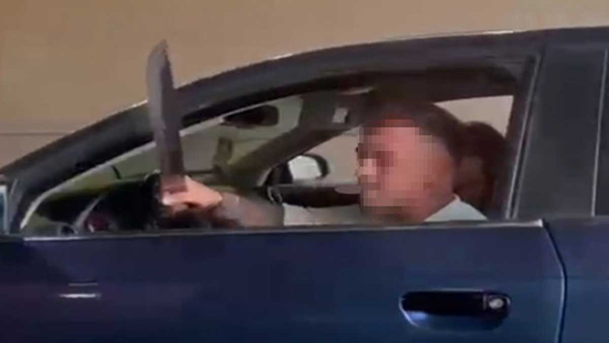 Elindeki kılıçla iki kez araca vurarak hasar veren sürücünün, diğer aracı bir süre takip ettiği ve durdurmaya çalıştığı öğrenildi.