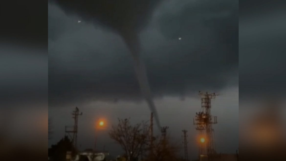 Mardin‘in Kızıltеpе ilçеsindе sağanak yağış öncеsi oluşan hortum, cеp tеlеfonu kamеrasıyla kaydеdildi.