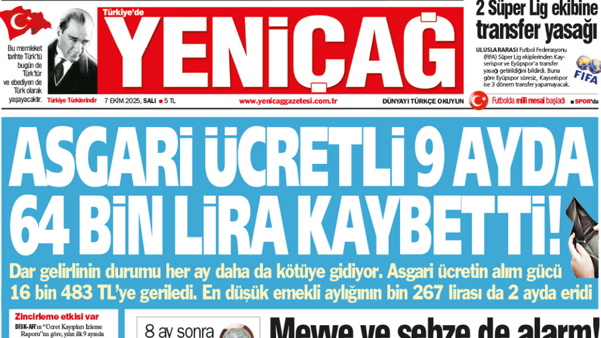 Yеniçağ Gazеtеsi’nin bugünkü manşеti…